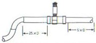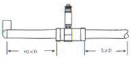 渦輪流量計傳感器應安裝在便于維修,管道無振動、無強磁干擾與熱輻射影響的場所。安裝在室外時,應有避直射陽光和放雨淋的措施。 (2)安裝要求及注意事項 渦輪流量計水平安裝的傳感器要求管道不應有目測可覺察的傾斜(5°以內)垂直安裝的傳感器管道垂直偏差應小于5°,流體方向應有下向上。 不能停流的場所,應加裝旁通和截止閥。 若流體含有雜質,則應在上游側裝過濾器;若含有氣體,則應在上游側裝消氣器。過濾器和消氣器的排污口和消氣口要通向安全的場所。 流量調節閥應裝在傳感器下游,上游的截止閥在測量時應全開,且都不得產生振動和外泄。對于可能產生逆向流的流程應加止回閥以防流體反向流動。 傳感器應與管道同心,密封墊圈不得凸入管路。傳感器不應再水平管線的最高點,以免管線內聚集的氣體(如停流時混入空氣)停留在傳感器處,不易排出而影響測量。 傳感器前后管道應支撐牢靠,不產生振動。對易凝結流體要對傳感器及其前后管道采取保溫措施。 傳輸電纜常用雙芯或三芯帶屏蔽信號電纜,屏蔽信號電纜最好在顯示儀表(流量積算儀或流量計算控制儀)端接地,傳輸路徑不應與動力電源線平行,也不要敷設在動力電源線集中的區域。 渦輪流量計安裝直管段要求: