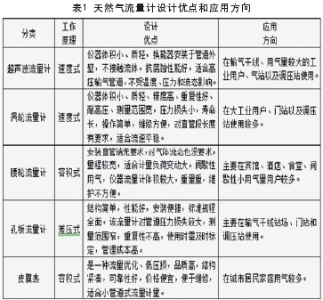 基于當前天然氣計量儀器的發(fā)展狀況,從測量原理角度分析,天然氣流量計可劃分為5類,分別為超聲波流量計、渦輪流量計、腰輪流量計、孔板流量計以及皮膜表[1-4]。各類流量計具體工作原理和特點等如表1所示。?